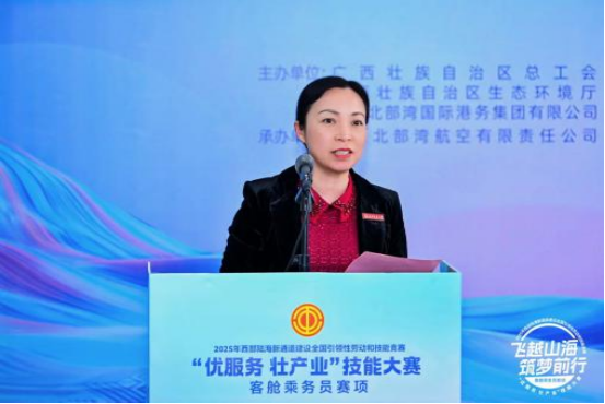 12月1日至2日,2025年西部陆海新通道建设全国引领性劳动和技能竞赛“优服务、壮产业”技能大赛客舱乘务员赛项,在南宁师范大学旅游与文化学院举行。本届赛事由广西壮族自治区总工会、西部陆海新通道领导小组办公室、广西壮族自治区人力资源和社会保障厅等共11家单位联合主办。广西民航监督管理局领导,南方航空、深圳航空、北部湾航空、桂林航空的领导和选手出席了开幕式,学校龙妮娜副校长出席开幕式并发表讲话。旅游与文化学院师生全程参与竞赛的志愿服务,并进行了观摩。