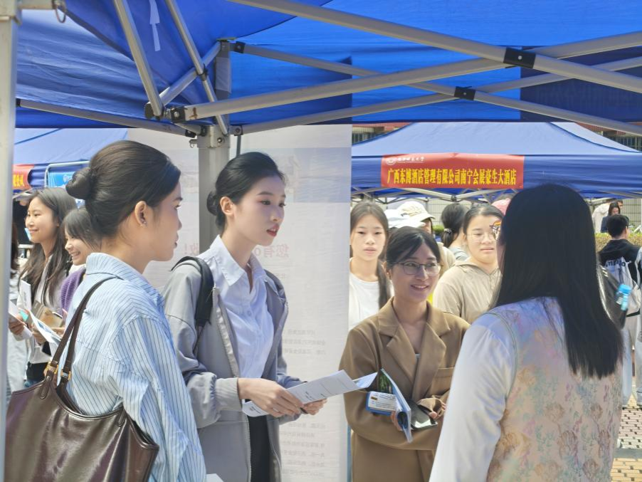 本次招聘会精准聚焦文旅行业,吸引了区内外46家优质酒店、文旅企业、旅游运营公司等单位参会,提供了酒店管理、文旅策划、导游服务、景区运营等1000余个对口岗位,为学院及相关专业毕业生搭建了高效的求职桥梁。