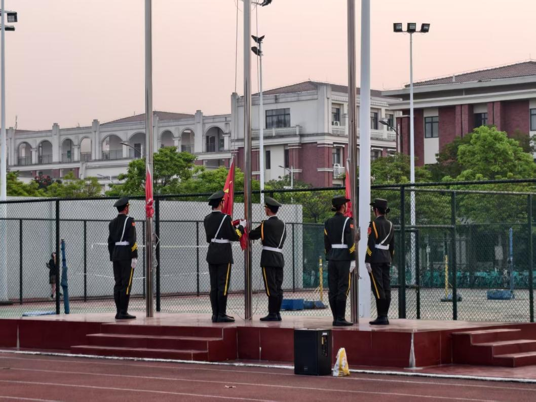 清晨6时50分,田径场上已列队整齐。旅文学子精神饱满,静待仪式开始。7时整,随着志愿者一声令下,升旗方队迈着铿锵有力、整齐划一的步伐,护送着鲜艳的五星红旗走向升旗台。队员们身姿挺拔、目光坚定,展现了旅文学子昂扬向上的精神风貌。