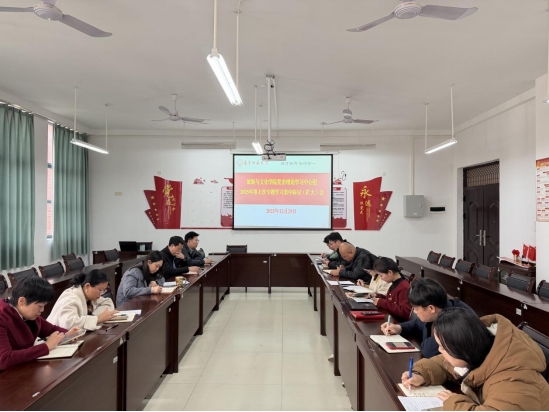 12月29日上午,旅游与文化学院党委理论学习中心组2025年第七次专题学习集中研讨(扩大)会在武鸣校区地信楼B201会议室召开。学院党委理论学习中心组成员、纪委委员、各党支部书记参加学习,院党委书记贾坷主持会议。