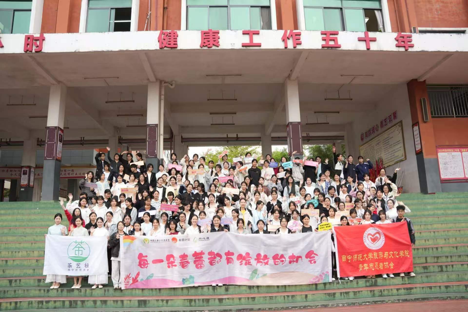 3月16日,旅游与文化学院团委携手学院茶艺社志愿者,联合广西同心源社工,走进宾阳县新桥中学,开展“春暖三月・守护花开”学雷锋日关爱春蕾女孩主题志愿服务活动。本次活动也是广西同心源“春蕾陪伴计划”项目的系列落地活动之一,以文化浸润与暖心陪伴,为春蕾女孩们的健康成长注入温暖力量。